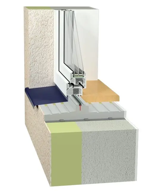 Wir verwenden bei Bedarf thermisch getrennte Unterbauprofile aus XPS (hochdruckfestes Dämmmaterial), um eine saubere und wärmebrückenfreie Anbindung im Fensterbank- und Schwellenbereich zu gewährleisten.